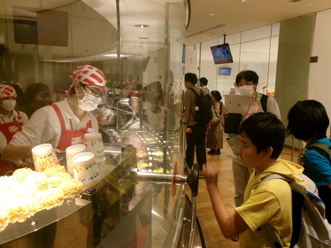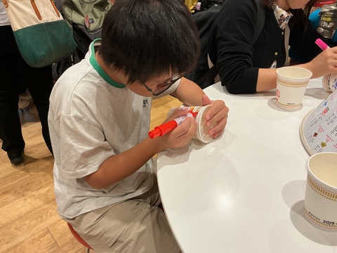1日目は三島駅に集合し、新幹線で横浜へカップヌードルミュージアム、ワールドポーターズ、山下公園と氷川丸に行きました。カップヌードルミュージアムでのカップヌードルづくりでは、麺にカップをかぶせる逆転の発想を体験しました。