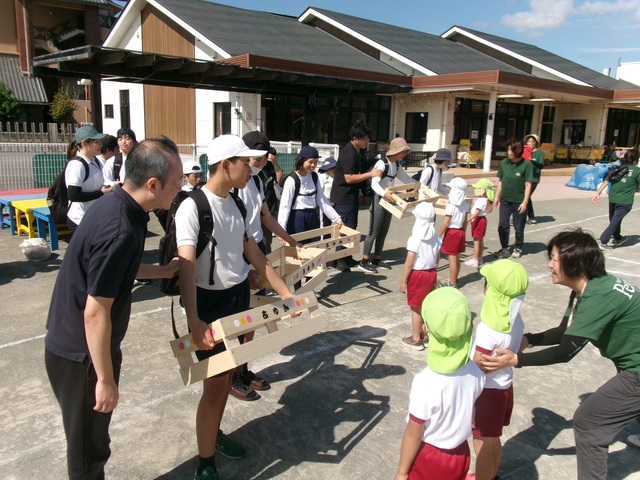 直接手渡したときの、子どもたちの笑顔とありがとうの言葉に、生徒たちもとてもよい表情でした。役に立ってうれしい、喜んでもらえてうれしい、といった実感をもつことができたと思います。
