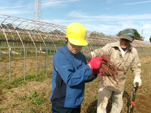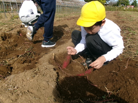 11月4日秋晴れの空の下、さつまいも堀り体験をしました。MOA自然農法文化事業団さんから今年もお声掛けいただき、6年生が参加しました。軍手と長靴で、準備は万端!