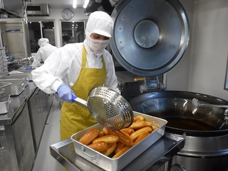 揚げパンは全員1本ずつにし、2本、3本の人には揚げていないコッペパンと合わせて提供しました。「どうして全部揚げパンじゃないのですか?」と質問してくれた高等部の生徒がいました。「食事の主食にするパンは、甘くないパンにするのが基本なんですよ。」と伝えると、「油や砂糖の取りすぎになってしまうのもありますね。」と話してくれました。生徒が給食を食べながらふと疑問に思うこと自体が尊く、さらにそれを声に出して質問してくれたことが素晴らしいなと感じました。給食時間に、児童や生徒たちと話ができることが毎日の励みになっています。