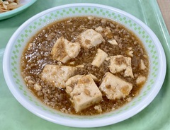 本校の麻婆豆腐の食材は、「玉ねぎ、にんにく、生姜、豚ひき肉、豆腐」の5種類のみです。調味料は、砂糖、八丁味噌、しょうゆ、塩、酒、豆板醤です。じゃが芋でん粉で軽くとろみをつけます。麻婆豆腐はこどもたちに人気のメニューで、今日も残食がとても少なかったです。