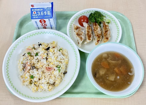 パラパラに仕上がったチャーハンは、好評でした。でも、口腔機能が十分に発達していないこどもたちには、口の中でまとまりにくく苦労している様子が伺えました。口の中でバラけて広がった米粒を、集めて奥歯に移動して咀嚼しまとまりにすることは、なかなか難しい技術です。口に残った米粒を、スープを飲んで送り込む様子が見られました。
