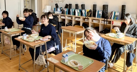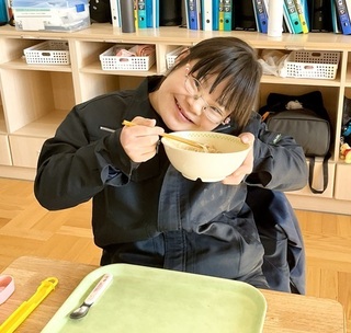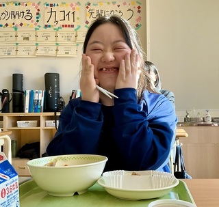 高等部2年3組では、笑顔で幸せそうに食べる生徒たちの姿が印象的でした。