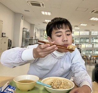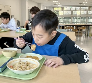 小学部6年生は、修学旅行で行った横浜中華街で、本場の中華料理を食べたときのメニューをおすすめ献立にしました。このおすすめ献立は、学校中のみんなが楽しみにしていた様子でした。パラパラに仕上がったチャーハンと、地元伊豆の国市の養蜂園さんのはちみつを使った油淋鶏、コーンの甘味が効いたスーミータン、みんな夢中で食べてくれました。もちろん6年生は、みんな完食!大満足のおすすめ献立でした。