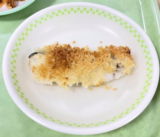 たらのパン粉焼きはサクサクに焼き上がり、たらのホクホクした身とのコンビネーションが好評でした。フライにするよりも手軽にでき、カロリーも抑えめにできるので、御家庭でいかがでしょうか。