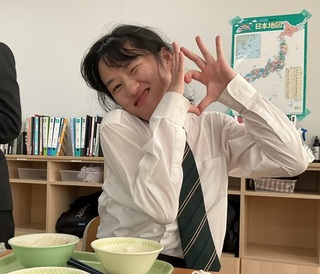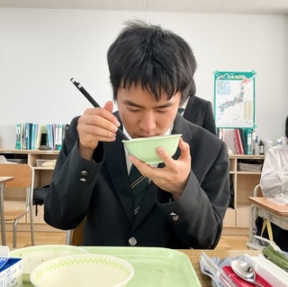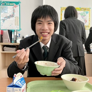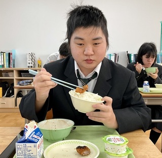 高等部3年2組では、懐かしく味わう生徒たちの姿に、頼もしさを感じました。他地域の食文化を楽しめる力は、これからの人生を豊かにしてくれるに違いありません。卒業を目前に「卒業まで給食はあと8回」と、残り少ない給食を楽しむ3年2組のみなさんの姿を見て、寂しさがこみ上げました。
