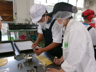 9月16日(火)に、田方農業高等学校の食品科学科食品栄養コース3年生と、伊豆田方分校の1年生が交流及び共同学習を行いました。今回はクッキー作りに挑戦です。