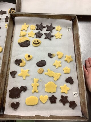 事前に田農の生徒がクッキーの生地を準備してくれており、本校の生徒は型抜きからスタート。最初はちぎれないように真剣に型抜きをしていました。