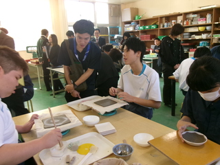 今回成型した皿は冬休み明けに分校生がやすりがけ、素焼き、撥水剤を塗るという作業を行い、次回の交流で皿に色をつける活動に取り組む予定です。