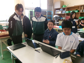 授業では、伊豆田方の生徒も教師の発問に挙手して答えるなど、積極的に学習に取り組む姿が見られました。