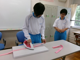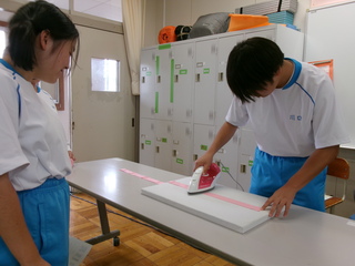 高等部1年生の家庭科の授業で、運動会で使用してはちまきのアイロンがけを行いました。