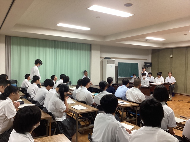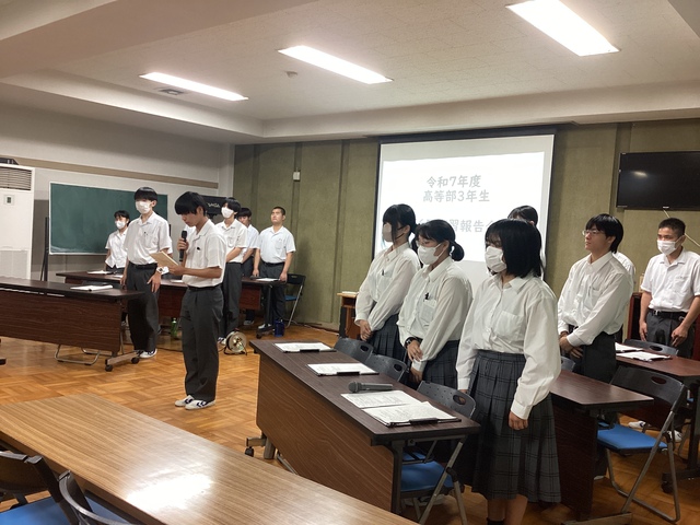 その第6回職場実習報告会を 7月4日(金)に行いました。3年生が職場実習について報告をし、それについて1年生から質問を受けて答えました。自分が経験した実習について、仕事内容や目標に対する成果と課題などを報告することができました。また、1年生の質問についても自分の言葉で答えることができました。
