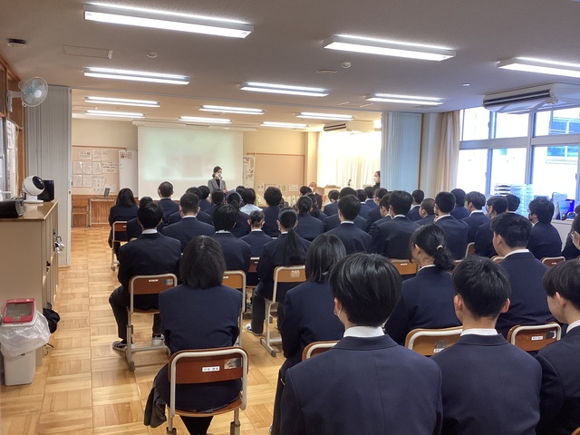 1月6日(火)に3学期始業式を行いました。12日間の冬休みでしたが、副校長先生から全校生徒に向けて「リフレッシュをし、心と身体のエネルギーを充電することができましたか。」と聞かれ、多くの生徒が半分以上はエネルギーを充電することができたと答えていました。2学期の終業式の際に、副校長先生から「努力ができる人になってほしい」というお話をしてもらいました。3学期は、今年度の集大成です。1・2年生は49日間、3年生は43日間という短い日数ですが、何事もまずはやってみるという気持ちを大事にして挑戦し、その後は継続する努力をしてみてください。大きく成長した、素敵な自分に出会えます。