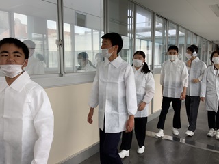 公開日 2025年06月04日 資生堂掛川工場へ職場見学に行ってきました。工場では、部署ごとに物を仕分けて配達する仕事、工場で働いている人の作業服を集めて洗濯する仕事、食堂の清掃をする仕事などいろいろな仕事を分担して行っていることを教えてもらいました。チェック表を使って丁寧に仕事をしていることや朝から夕方まで働ける体力が必要なことなど中学部での学習が将来働く人になることに繋がっていると実感することができました。