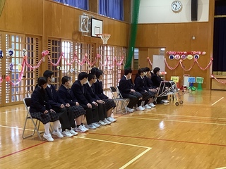 公開日 2026年03月09日 卒業する3年生に感謝の気持ちを込めて1、2年生が中心となって準備をしました。飾りグループでは、お花やメッセージなど心を込めて制作し、きれいに飾ることができました。企画グループでは、ボッチャや思い出ムービーなどを考え、当日は楽しそうに取り組んだり、写真を見ながら思い出に浸ったりする様子が見られ、3年生に感謝の気持ちが伝わった会にすることができました。