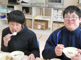 13日に卒業式を控える小学部6年生、中学部3年生は給食最終日となりました。進路先での活躍を期待しています。