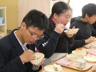 給食の時間には高等部保健給食委員会による献立紹介もありました。