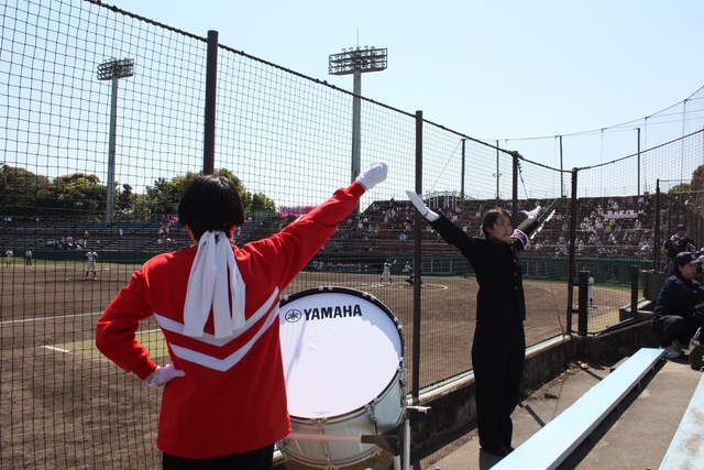4月19日、26日に野球部の皆さんを応援させていただきました。選手の皆さんの全力のプレーに、我々の応援にも力が入りました。これからも選手の皆さんに全力のエールを届けられるよう日々精進していきます。