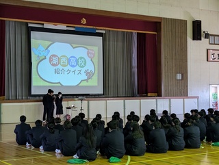 対面式では、湖西高校の紹介をクイズ形式で行ったほか、1年部の教員へのインタビューや吹奏楽部による演奏が披露され、新入生を温かく迎える内容となりました。