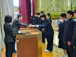 認証式では、対面式でも活躍した令和8年度前期生徒会役員が認証されました。