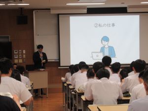公開日 2025年09月22日 9月5日(金)に進路学習会Ⅰ,Ⅱを行いました。 進路学習会Ⅰでは、卒業生や就職先の御担当者様をお招きして、在校生や保護者に向けて 企業の求める人材や社会人の生活、学校生活で身に付けたい力を教えていただきました。 進路学習会Ⅱ(保護者対象)では、障害者就業・生活支援センターさつきの御担当者様からさつきの役割や支援事例、長く働くために必要な力について教えていただきました。