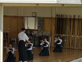 5月の昇段審査に向けて「坐射」の稽古が始まりました。
