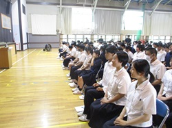 公開日 2025年07月08日 進路決定を控えている3年生を対象に、講師をお招きしてマナー講座をおこないました。 進学や就職の面接試験での姿勢や態度が大切です!沼商生は体育館に入るときのスリッパを揃えておきます。よき伝統です。マナーはそこから!