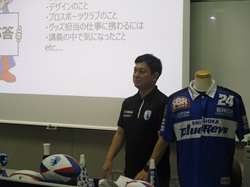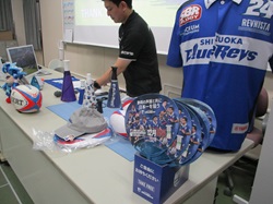 公開日 2025年09月05日 静岡ブルーレヴズのマーチャンダイジング部の山本さんをお招きしてレヴズの商品グッズについてお話をうかがいました。その後、自分たちの企画した商品を発表し合い、山本さんからは商品として考えられるね!というお言葉をいただきました。今活躍されている方々からお話をしていただき本物に触れることで手ごたえを掴んでいます。 山本さんは本校のOBです!後輩の私たちのために、ありがとうございます!来週は選手の方をお招きしてラグビーの体験をみんなでおこないます。