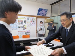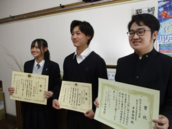 公開日 2025年12月01日 作文:「見えない支えに気づいた日」(2年 中倉さん)、「私が守る未来と希望」(2年 岡村さん)そして、標語「社会をまわす 税という名の循環システム」(秋山さん)が沼津税務署長様から表彰されました。沼商での学びを具体的に表現することができました。