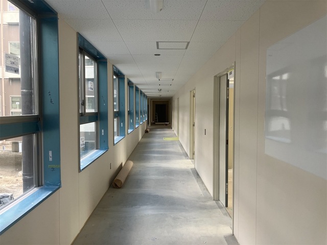 公開日 2025年12月16日 新しい校舎の内装工事が進んでいます。 家具が入るのが楽しみですね。 ↓図書室 木目調の床が落ち着いた雰囲気です。 ↓総合実践実習室 パソコンを使った授業を行う教室です。床下の配線もしっかり整備されています。 ↓クラスルーム、廊下 こちらの床はまだ施工していませんが、壁と天井はできあがっています。電気も空調もばっちり。 新校舎は令和8年4月運用開始です!
