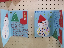 公開日 2026年01月06日 情報処理部の生徒がプログラミングの勉強をサポートしている、清水町のキッズラボ放課後探究教室の小学生の皆さんからクリスマスカードをいただきました。 クリスマスカード、ありがとうございます!これからもお互いに勉強しましょうね!