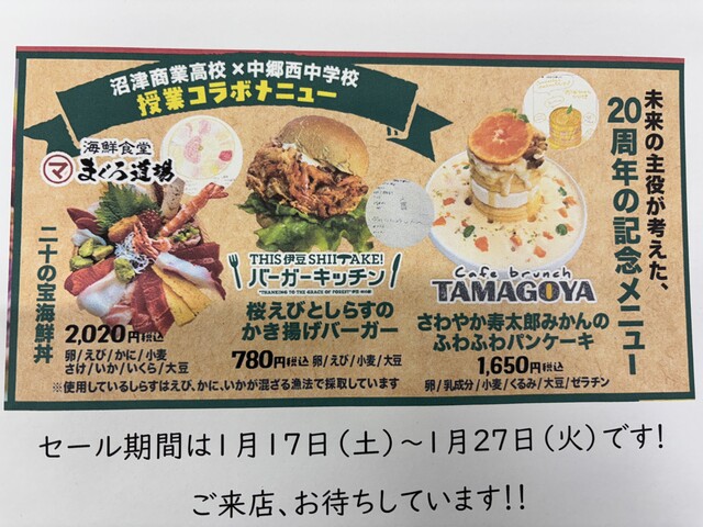 公開日 2026年01月15日 食のテーマパーク 伊豆村の駅で沼商生と中郷西中の生徒さんとのコラボ商品を販売します。期間は1月17日(土)から1月27日(火)です。ぜひ、伊豆村の駅に買いに来てください!