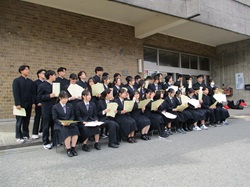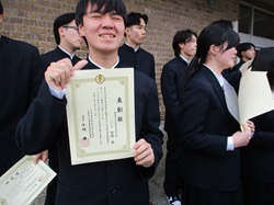 簿記や情報処理、マーケティングなどの商業の検定に3種目以上合格した生徒たち41人です。4種目、5種目・・・とたくさんの検定に合格した生徒も多くいました!