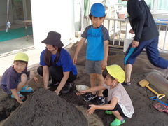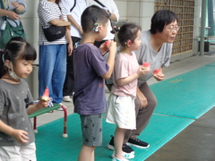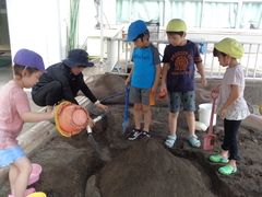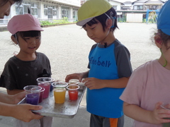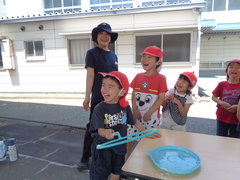 暑い日が続きましたが、元気に夏のあそびを行いました。季節を感じながら、幼稚部の友達と一緒に、ダイナミックなあそびを思う存分楽しみました。
