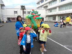本校幼稚部の子供たちは、おまつりに向けて一生懸命おみこしを作ったりお店屋さんの準備をしたりしてきました。特におみこしについては、各クラス趣向を凝らしたおみこしに仕上がり、保育所の友達にもたくさん喜んでもらいました。子供たちも満足げで協力して頑張って作り上げた喜びを感じていました。