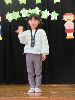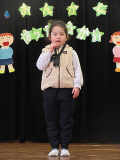 1月28日におんがく発表会を行いました。一人ひとりが舞台に立ち、友達やお母さん方の前で歌を披露しました。