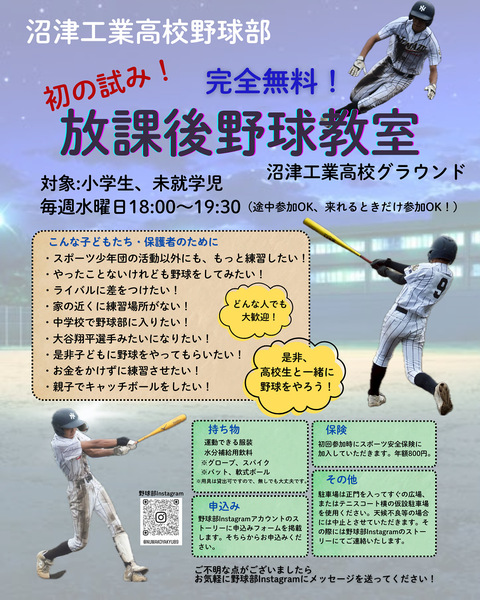 申し込みや詳細は野球部Instagramでご確認ください!https://www.instagram.com/numakoyakyu89/?hl=ja