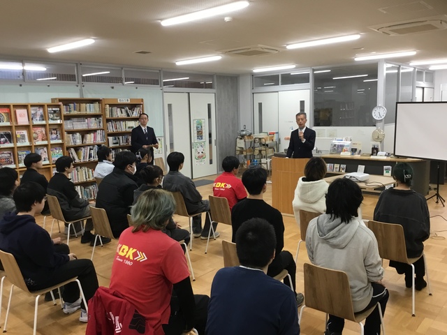 終業式に引き続き、教務部長と生徒指導部長からお話がありました。共通していたのは「体調を整えて休まず登校する」ということでした。1月6日から始まる3学期。1学期、2学期と比べて登校日数も少ないので、みんなで皆勤を目指そう!