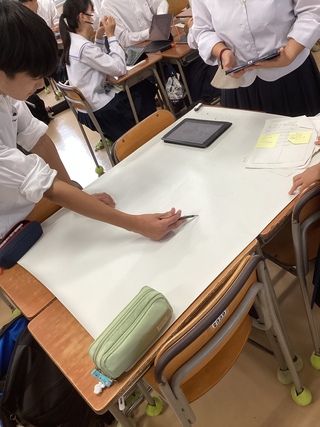5月15日(木)の探究では、課題設定をし始めました。模造紙に自分たちグループが興味・関心あることを出していき、課題設定をし始めています。教員も生徒と一緒に探究しています。
