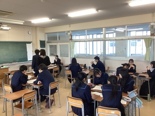 他の生徒たちからも質問を受け、自分たちの課題設定、情報収集、考察など見直しができました。中間発表を受けて、それぞれのグループに持ち帰り、再度、探究を行っていきます。最終発表まであと少しです!