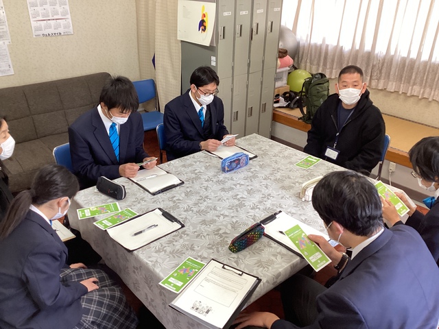 2月5日 3年生 職業「校外学習」 職業では、障害者就労支援・生活支援センター(中ぽつ)へ行きました。将来、職場や日常生活での困り事を相談できること、サービス内容、利用方法について学ぶことができました。