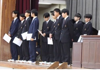 公開日 2026年01月05日 12月22日に終業式が行われました。 2学期には、球技大会、クロカン、修学旅行、インターンシップなど多くの行事があり、 充実した生活を送ることができたと思います。 年が明けるとすぐに新学期が始まり、あっという間に卒業・進級を迎えます。 それぞれの目標に向かって有意義な冬休みにしてください。 表彰:クロスカントリー大会入賞者、ハンド部(女子)、ダンス部、 総合文化部写真班、英検2級合格者