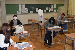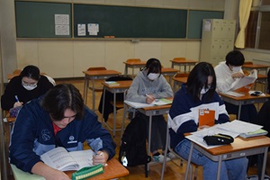 本日は特別時間割で放課後全員で漢字検定にチャレンジしました。定時制では漢字検定の他、数学検定にも全員でチャレンジしています。生徒と一緒に受験する先生もいます。普通科の定時制では珍しい簿記検定や情報処理検定にも商業科目を選択すると受験することが可能です。検定の費用は小山町や御殿場市の補助金で一部を補助し、生徒の検定取得を推奨しています。それぞれが自分の目標にあった検定に取り組むことができる定時制です。