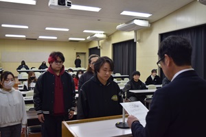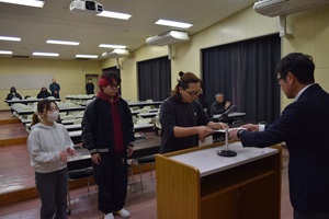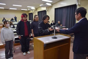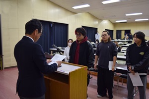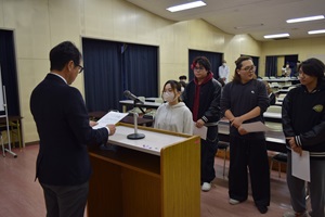 本日視聴覚室にて令和8年度前期生徒会任命式を行いました。4年生が卒業を控え、本格的に生徒会の活動が1,2,3年生に移行していきます。今回信任された生徒会のメンバーは、様々な場面で人の前に立ち、定時制の代表として行動する機会が与えられます。その責任の一端として、日々の行動や後輩への接し方など、役割を与えられた生徒にはその役職に見合った品性が問われることになります。そういう責任を少しずつ自覚できるように内面が成長していくことを期待しています。