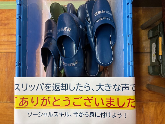 学校のものを借りて、それを返すときには、大きな声で「ありがとうございました」を! 人としての礼儀を身に付けましょうね。事務職員も、生徒の成長に関わってくれています。