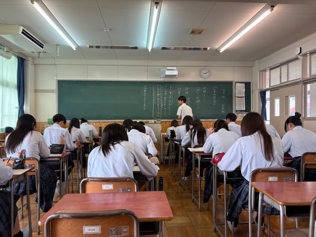 公開日 2025年06月19日 今日も暑かったですねー。体育では水泳の授業を見学しました。 (2年生 保健体育 つけたい力「自分の泳ぎを分析して、課題を見つける力、課題を解決するために練習方法を選択する力」) 3年生では、『山月記』を勉強していました。 (3年生 文学国語 「なぜ李徴の詩は第一流の作品になれないのか」)