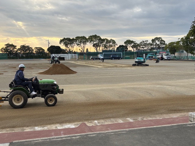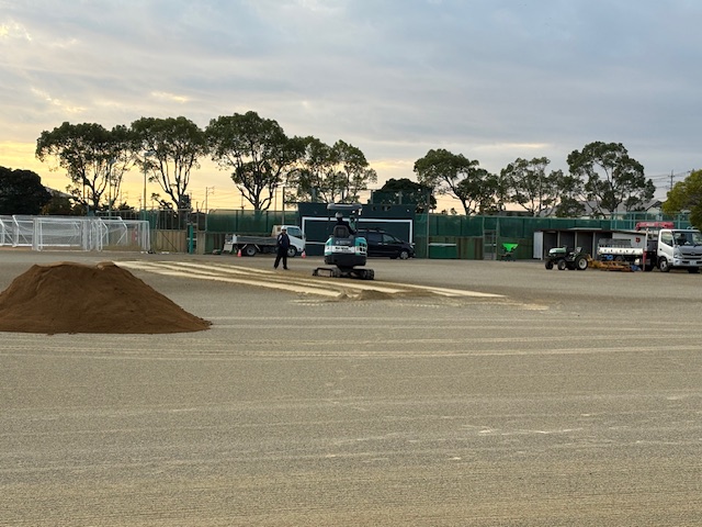 公開日 2025年11月27日 年に1度、専門の業者さんに依頼して、グラウンドの整備を行っています。今朝も7時前から作業をしてくださっています。音が出るので、テストの邪魔にならないように、学校が始まる前に、とのご配慮です。本校のグラウンドが、とても水はけがよくて使いやすいのは、このような御支援のおかげです。