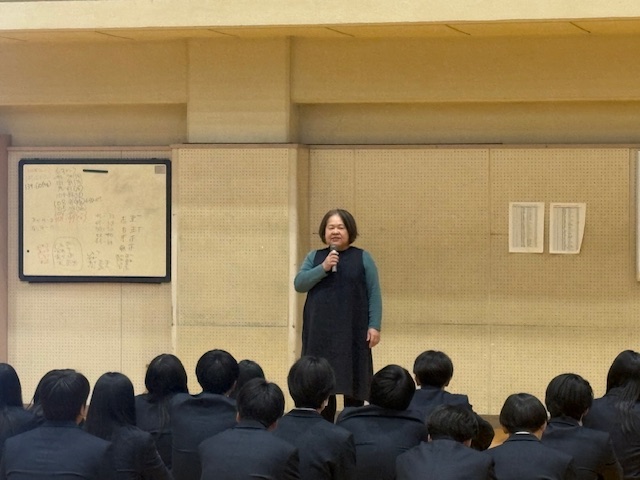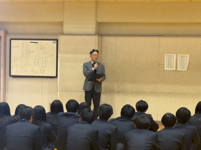 公開日 2026年01月16日 大学入学共通テスト受験者に向けて、激励会を行いました。副校長先生と学年主任の先生から励ましの言葉をいただき、進路課長の先生から重要事項の確認がありました。共通テストの日はこれまで積み重ねてきた努力を発揮する日!、先のことをあれこれ心配しないで目の前の問題に全力で向き合って!、甘いものなどで気分転換したりして気負いすぎずに!など、みんなを思っての温かい言葉をいただきました。これまでの努力が実を結ぶよう、祈っていますからね。