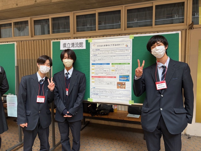 公開日 2026年02月16日 2月11日に静岡県立大学を会場に行われた、ふじのくに地域・大学フォーラムのでのポスターセッションで、21HRの生徒が発表を行いました。「ごみは人を幸せにできるのか」というタイトルで、地域の課題解決のため、自分たちで考えたアクションを起こしました。効果的なアクションを目指し、また新たな課題に気づいた取組でした!