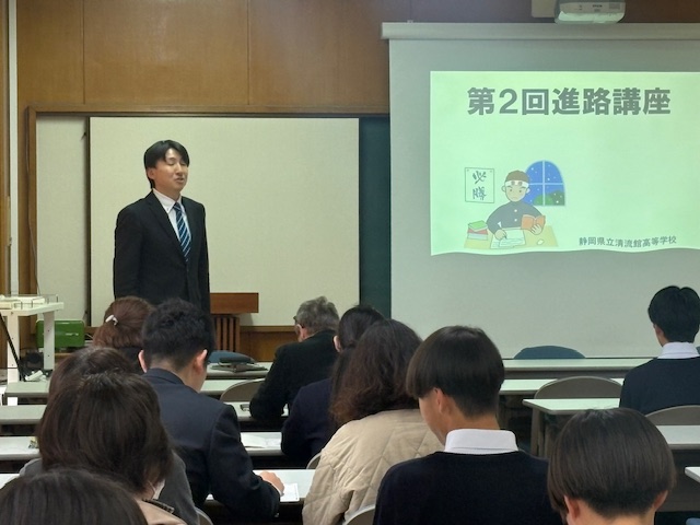 公開日 2026年02月25日 本校の進路課長を講師として、進路講座を開催しました。現3年生の最新の進路状況についての情報共有、模試の成績表の見方の解説、進路実現に向けての具体的な行動についてのアドバイスを行いました。今日、国公立大学前期個別試験を受験している先輩に続き、2年生、1年生もがんばりましょうね。保護者の方も御参加くださり、ありがとうございました。